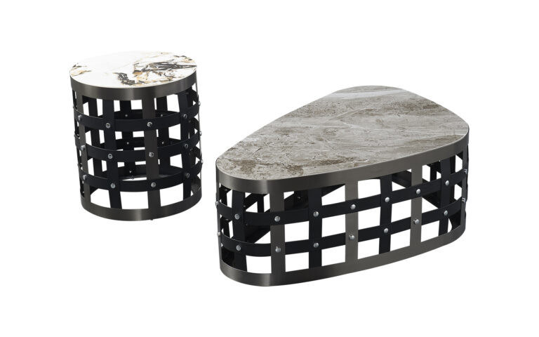 Zestaw stołu kawowego posiada wyjątkowy i przyciągający wzrok design podstawy.tworząc wzór siatki, który dodaje nowoczesny i geometryczny element do zestawuTen nowoczesny projekt nie tylko zwiększa ogólną estetykę, ale także zapewnia stabilność i wsparcie strukturalne.