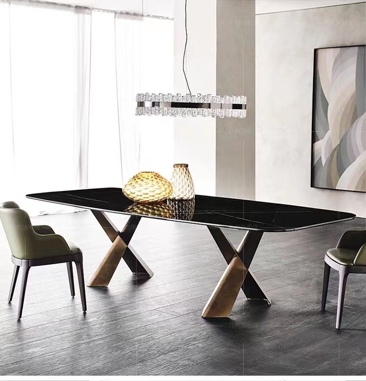Nowoczesna luksusowa złota podstawa z kamienia spiekanego z ceramicznym stołem do jadalni |